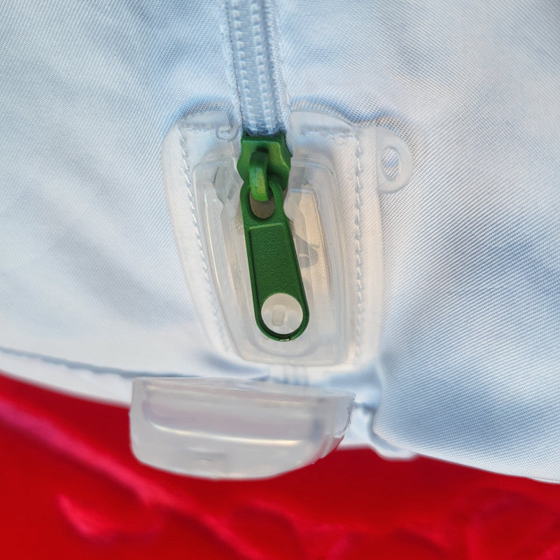 La housse CleanRest® est conçue pour un lavage en machine à 60 °C ! Elle est également hydrofuge : elle est imperméable. Si vous êtes maladroit et renversez du café ou du jus d'orange sur la housse, celle-ci ne s'en retrouvera pas imprégnée. Le liquide restera en surface, s'écoulera et n'imprègnera pas le cœur de votre oreiller de sa couleur ou de son odeur.