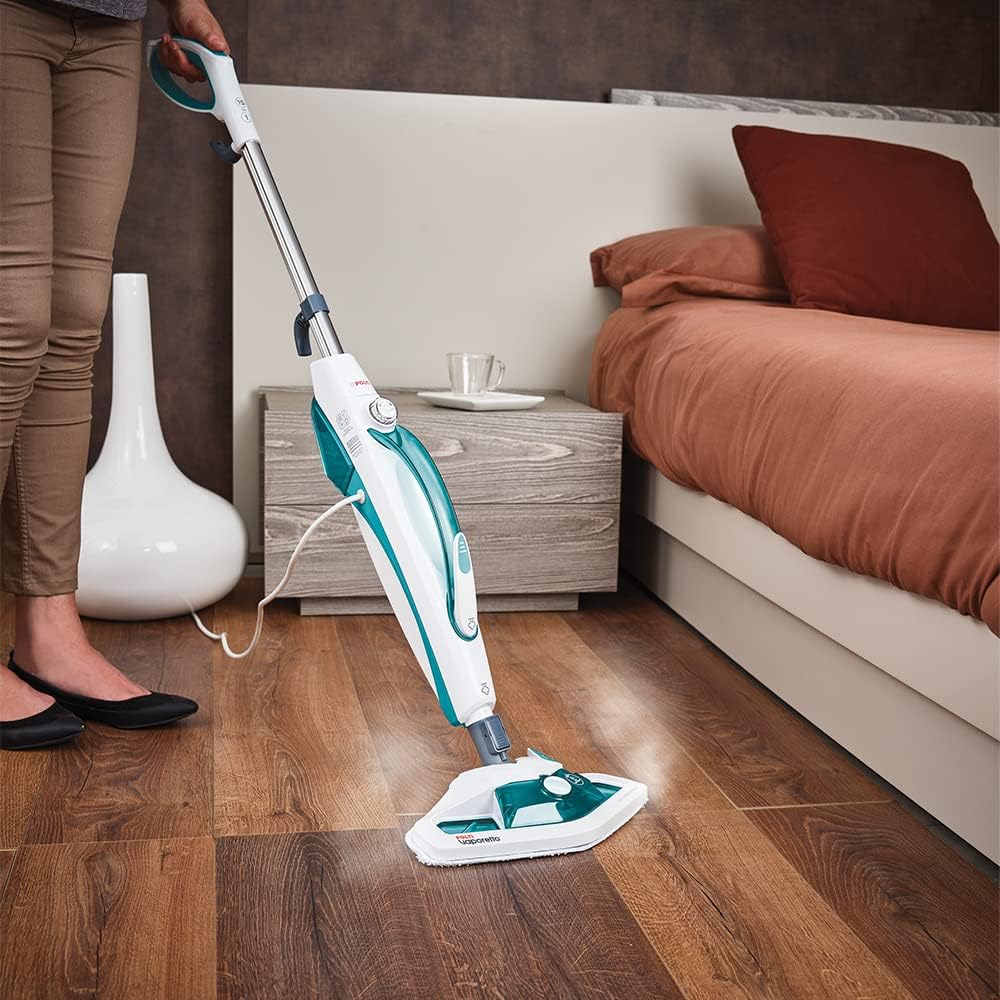 Polti Vaporetto SV450_Double est un balai vapeur avec double fonction : en un geste, il se transforme en nettoyeur vapeur.